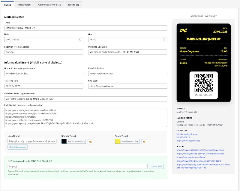 Eventbrite è una piattaforma fantastica per vendere biglietti al grande pubblico. Ma se cerchi una vera alternativa a Eventbrite per i tuoi eventi aziendali, lanci prodotto o serate VIP, hai bisogno di un sistema 100% White Label. Niente loghi di terze parti, niente app da scaricare: solo i tuoi Pass d’ingresso consegnati direttamente su Apple Wallet e Google Pay tramite SMS.